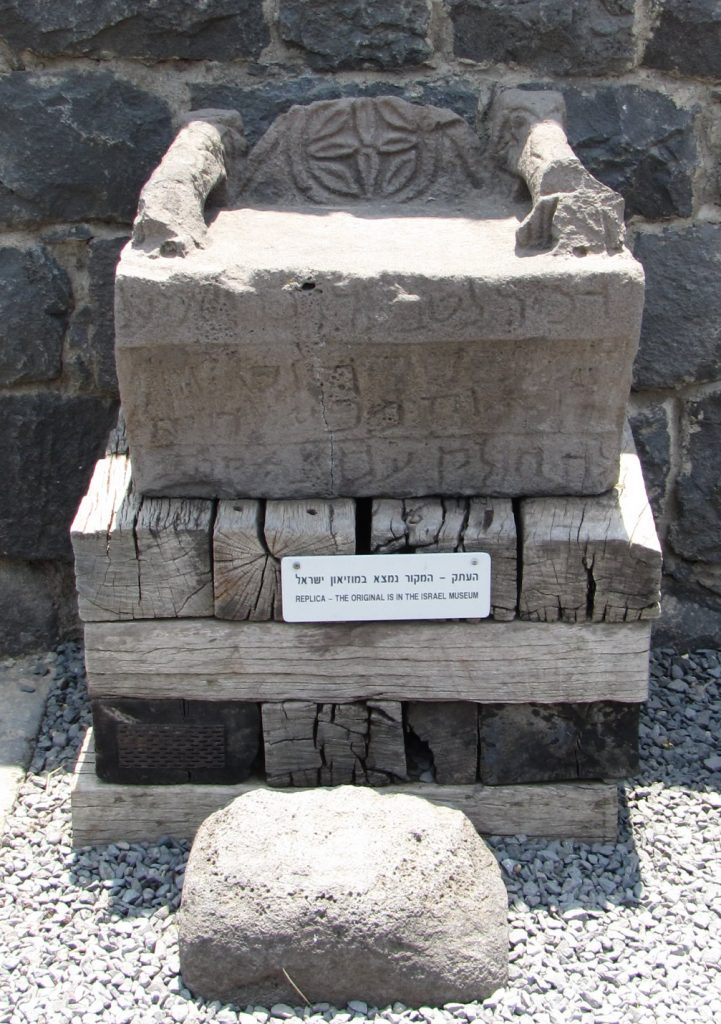 Ce siège était situé près du mur le plus proche de Jérusalem, ce qui indique que les offices étaient dirigés du côté de la salle la plus proche de Jérusalem, et non du centre. Il est intéressant de noter que la ville de Chorazin où a été retrouvée cette chaire par les archéologues est mentionnée dans les évangiles. Yeshoua avait déclaré que les habitants de Chorazin devaient se repentir.